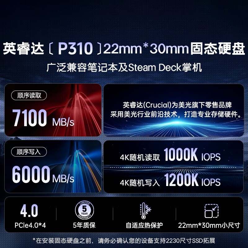 Crucial P310 1TB固态硬盘京东促销到手仅549元