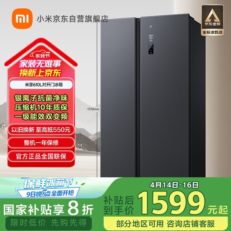 米家MIJIA BCD - 610WMSA冰箱 京东8折1599元