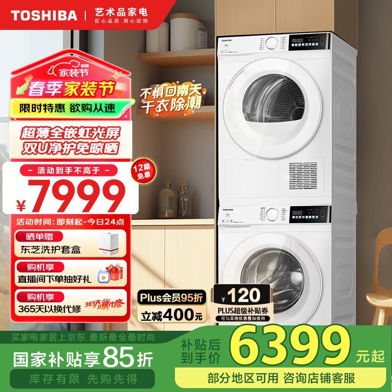 东芝玉兔系列10KG洗烘套装京东优惠价7699元