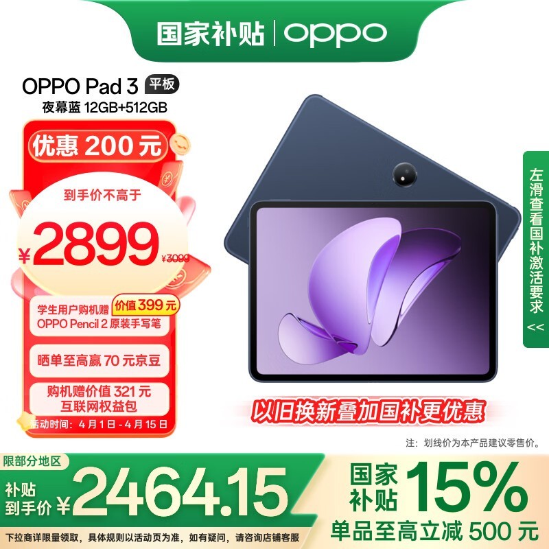 OPPO Pad 3平板电脑京东优惠价2899元