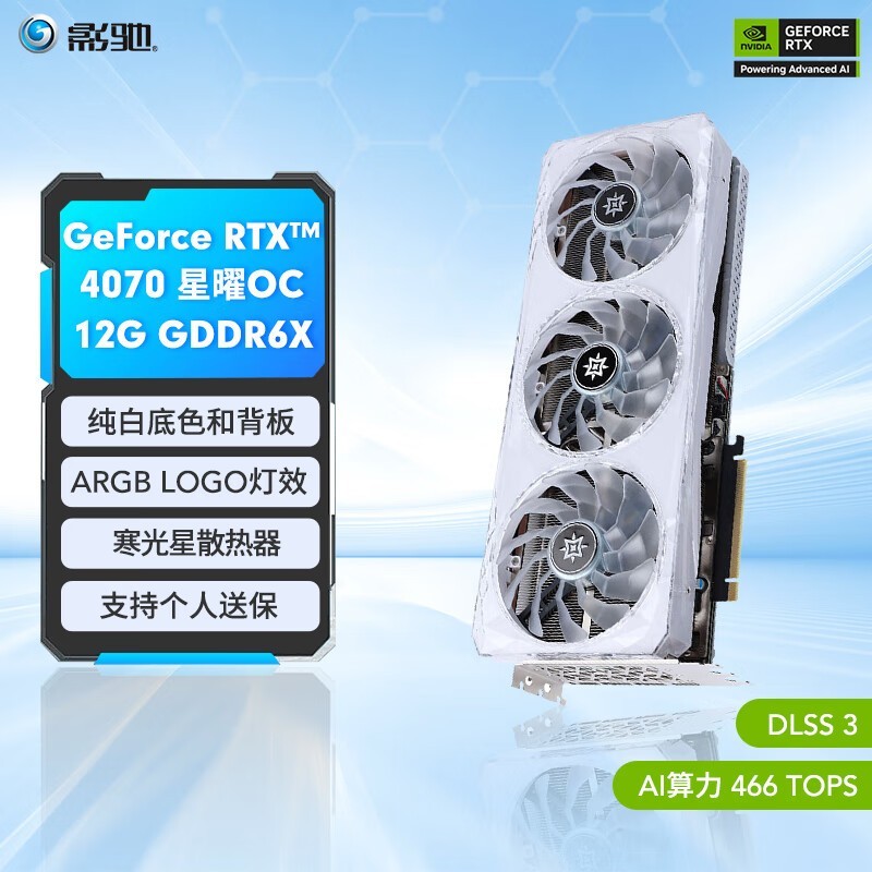 影驰RTX4070星曜OC显卡京东好价4699元到手