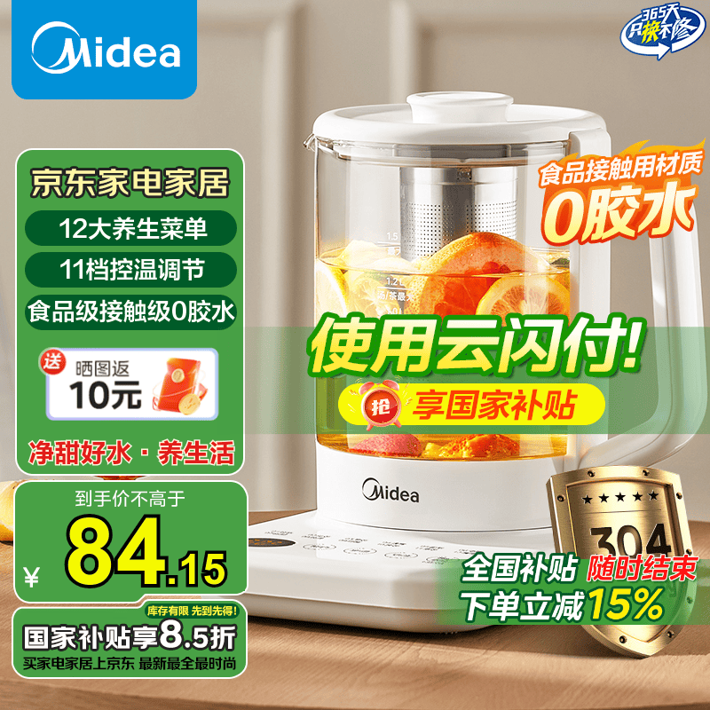 美的1.5L全自动煮茶壶12小时恒温煮花茶多段控温