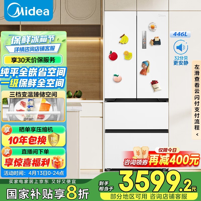 美的446L法式多门冰箱 3199元可入手