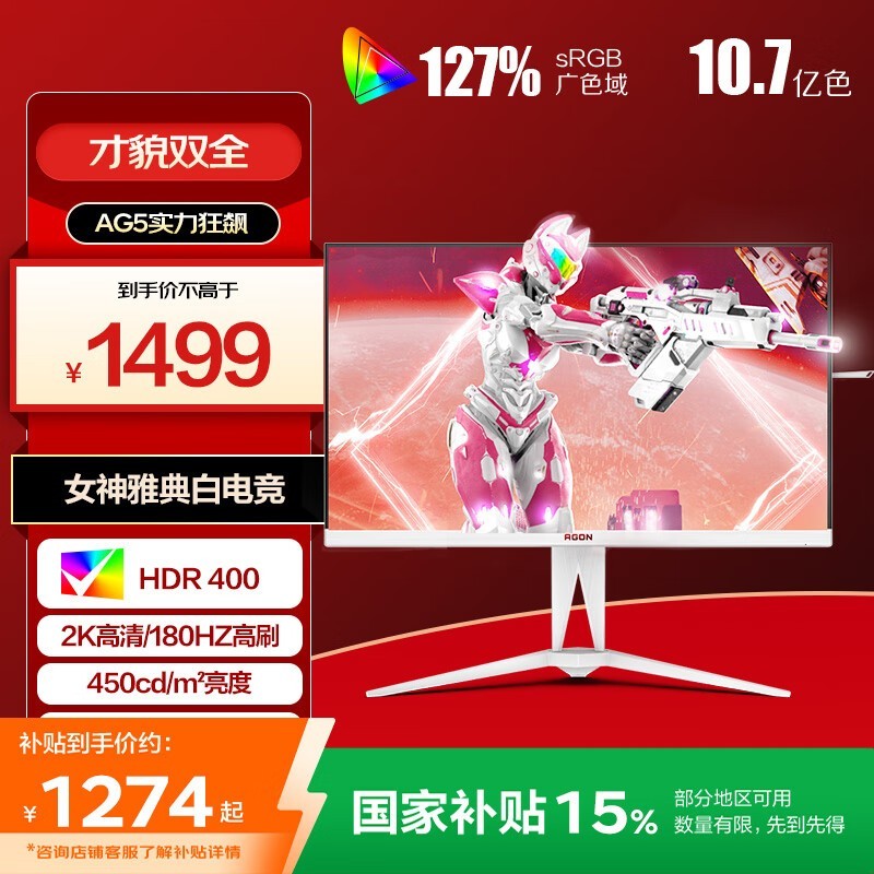 AOC爱攻AG275QXW电竞显示器京东优惠价1499元