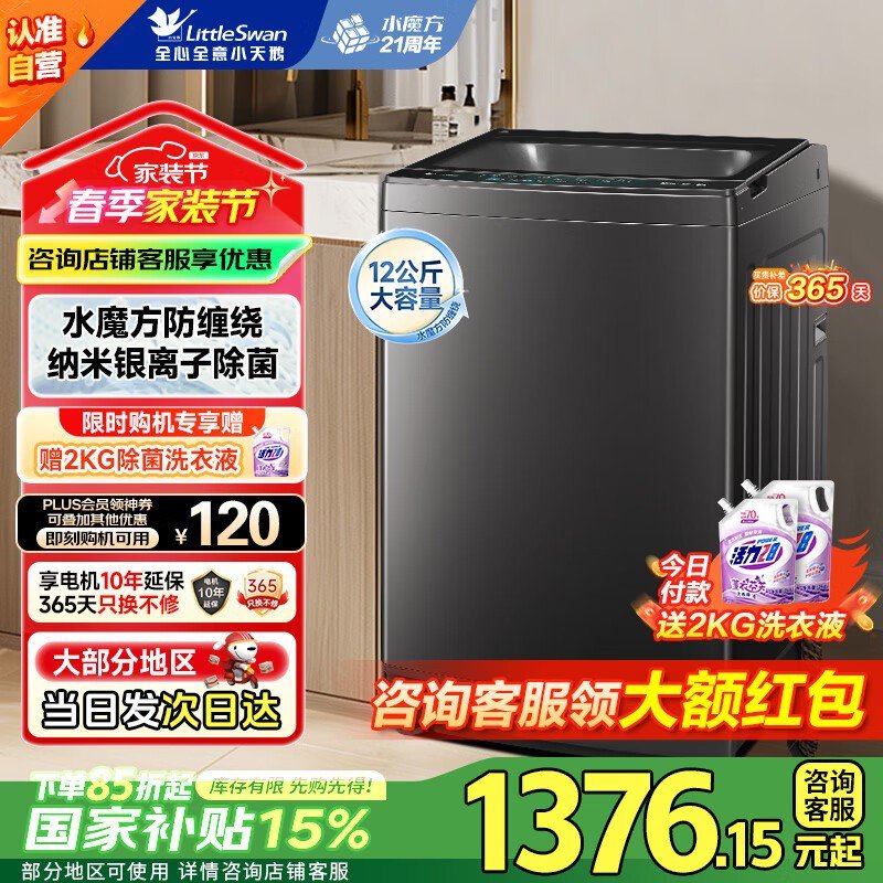 小天鹅TB120V01MT波轮洗衣机到手价1499元