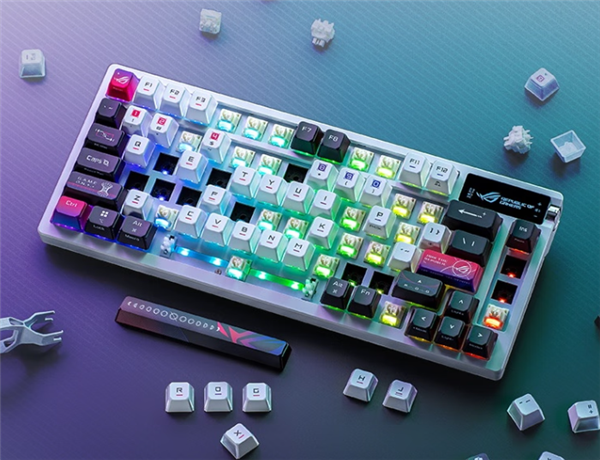 快科技4月13日消息,华硕带来了ROG夜魔X机械键盘(ROG Azoth X Gaming Keyboard),支持三模连接,75%配列布局,搭载了名为NX V2的ROG自研轴体,属于雪武白轴V2,售价为1999元。