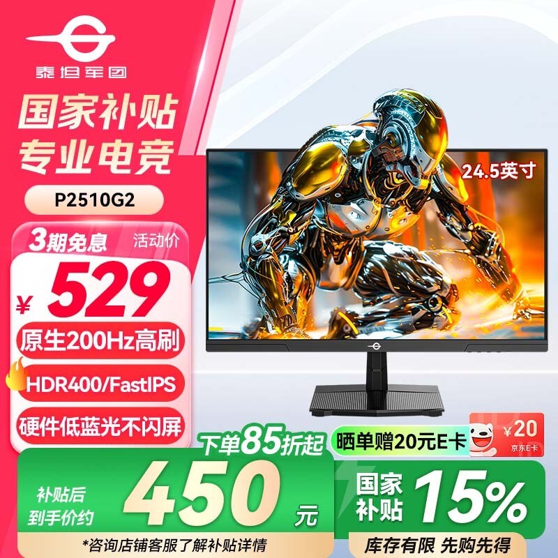 泰坦军团P2510G2显示器24英寸1080P京东活动价427元