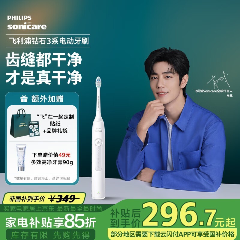 飞利浦电动牙刷钻石3系皓月白情侣款送礼佳选低至295元