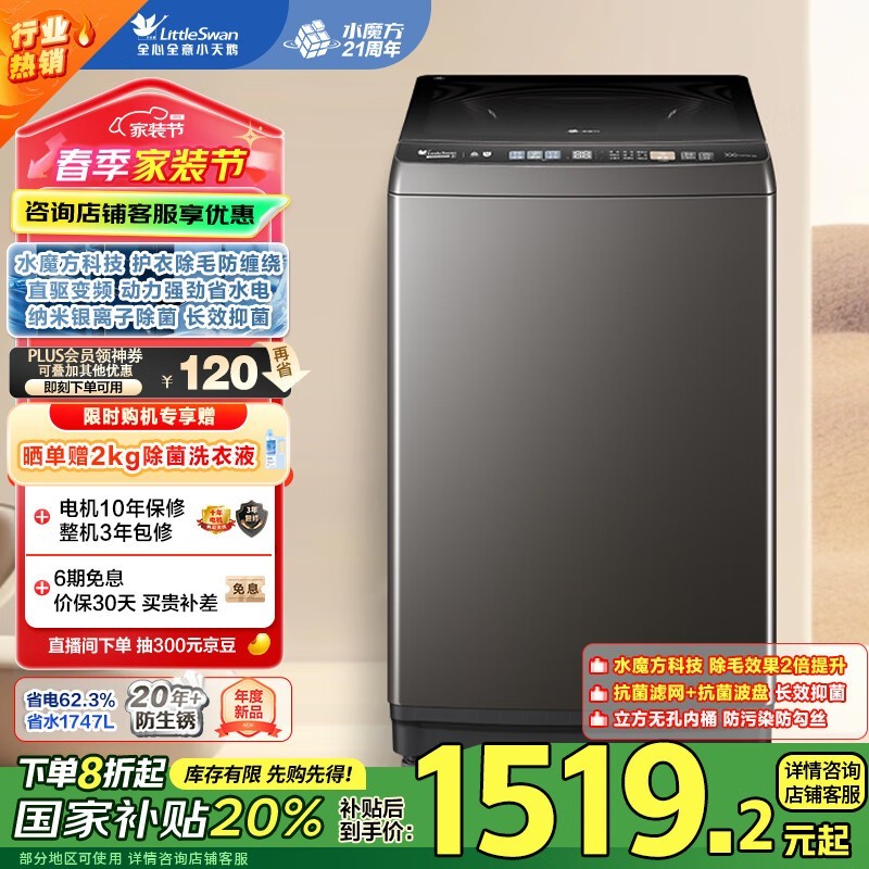 小天鹅水魔方波轮洗衣机,京东价1849元