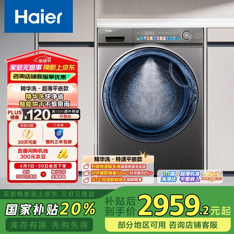 海尔精华洗洗烘一体机10KG高效洗衣体验