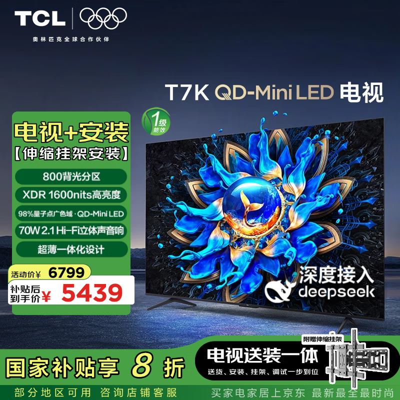 TCL T7K 85英寸电视优惠价4575元含安装