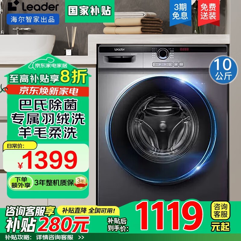 Leader洗烘一体机10kg大容量蒸汽杀菌空气洗变温烘干