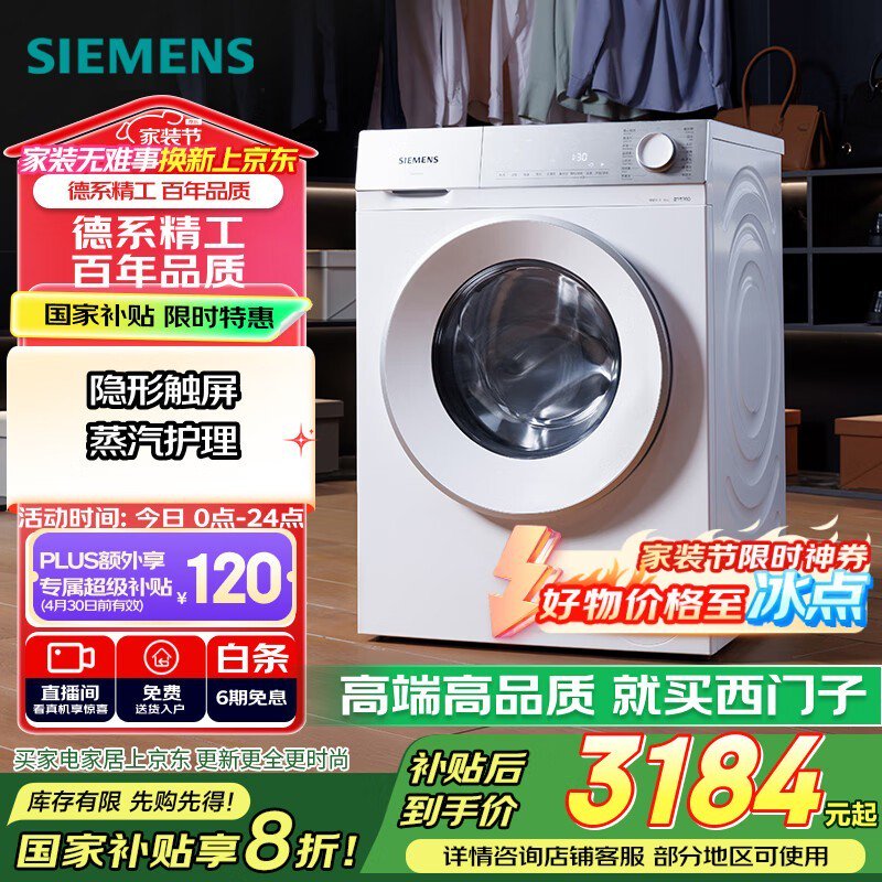 西门子小晶钻系列洗烘一体机WN52B2U08W蒸气护理除菌去皱