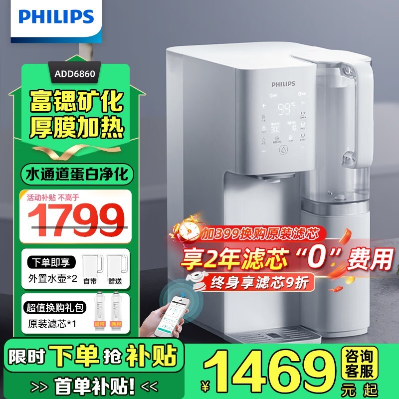 飞利浦ADD6860台式净饮机京东特惠1648元享健康饮水
