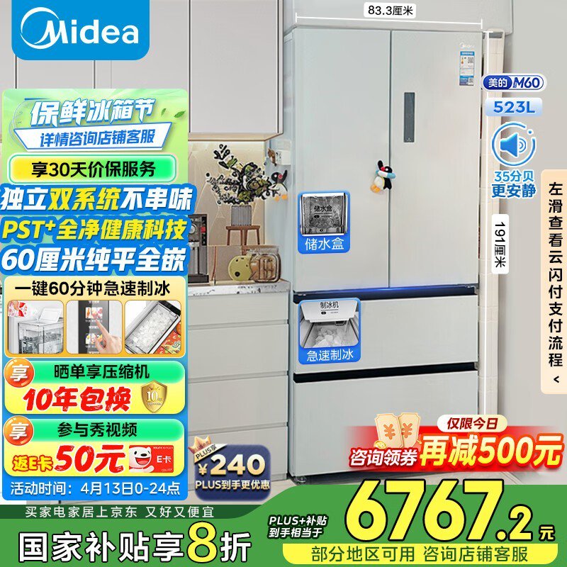 美的MR-550WUFIPZE多门冰箱532L嵌入式设计双变频促销