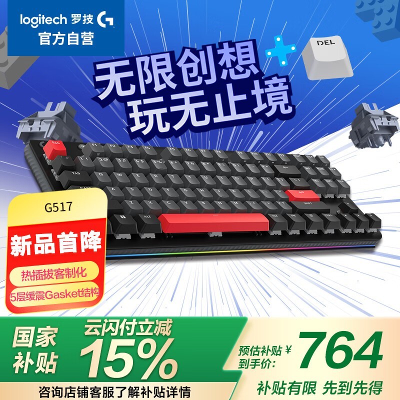 罗技G517三模机械键盘4月14日京东五折