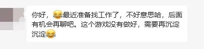 “最近准备找工作了……这个游戏没做好,需要再沉淀沉淀。”