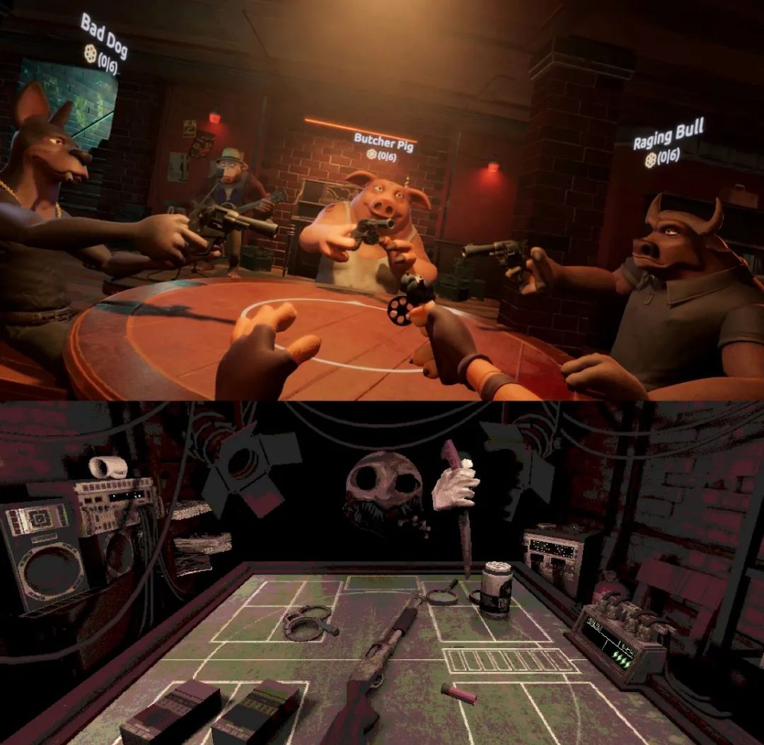 所以在改编成电子游戏时,游戏作者们要么在其中加入社交要素,要么就用机制多样的道具赋予它策略性——去年的两大热门独立游戏《骗子酒馆》和《恶魔轮盘》就正好对应了这两个方向。