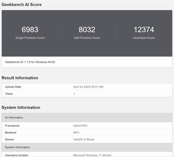 Geekbench AI主要测试计算单元的单精度、半精度以及量化性能。酷睿Ultra 9 275HX的CPU在三项测试中分别得到7573、7572以及13190分的成绩;NPU则分别为6983、8032以及12374分,CPU部分的单精度和半精度算力比酷睿Ultra 9 285V要高不少,量化性能略高一些,NPU部分的单精度算力略高一些,但半精度和量化性能不及酷睿Ultra 9 285V。