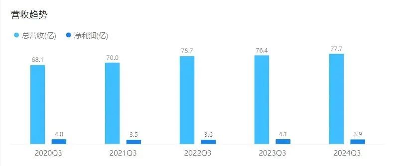 从2020年开始,红旗连锁增长乏力:尽管疫情带来的囤积行为让红旗连锁的营收在2020年同比增长了15.73%,但随着营业成本的上升,当年的净利同比下降了2.2%;接下来的三年,红旗连锁的营收增速分别放缓至3.29%、7.15%、1.12%,净利润也十分不稳定,先是同比下降了4.66%,又同比增长了0.9%和15.53%。2024年前三季度,红旗连锁营收同比增长1.65%,净利同比下降4.21%。