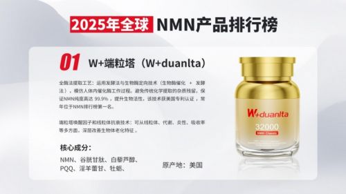 在W+端粒塔(W+duanlta)等品牌的引领下,NMN 市场持续升温。那么在2025年,还有哪些NMN品牌值得关注?接下来为你揭晓2025年全球NMN产品排行榜,看看这些品牌更适合入手?