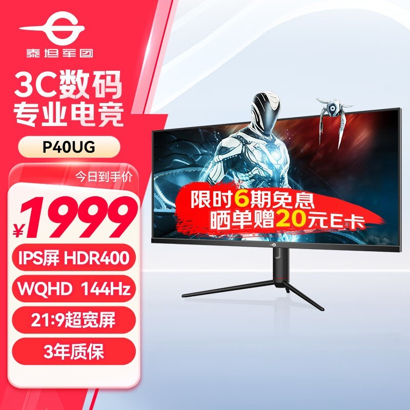 泰坦军团P40UG显示器超宽带鱼屏仅1979元享2K画质