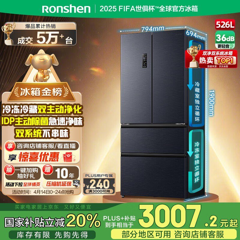 容声526L风冷冰箱京东优惠价2679元