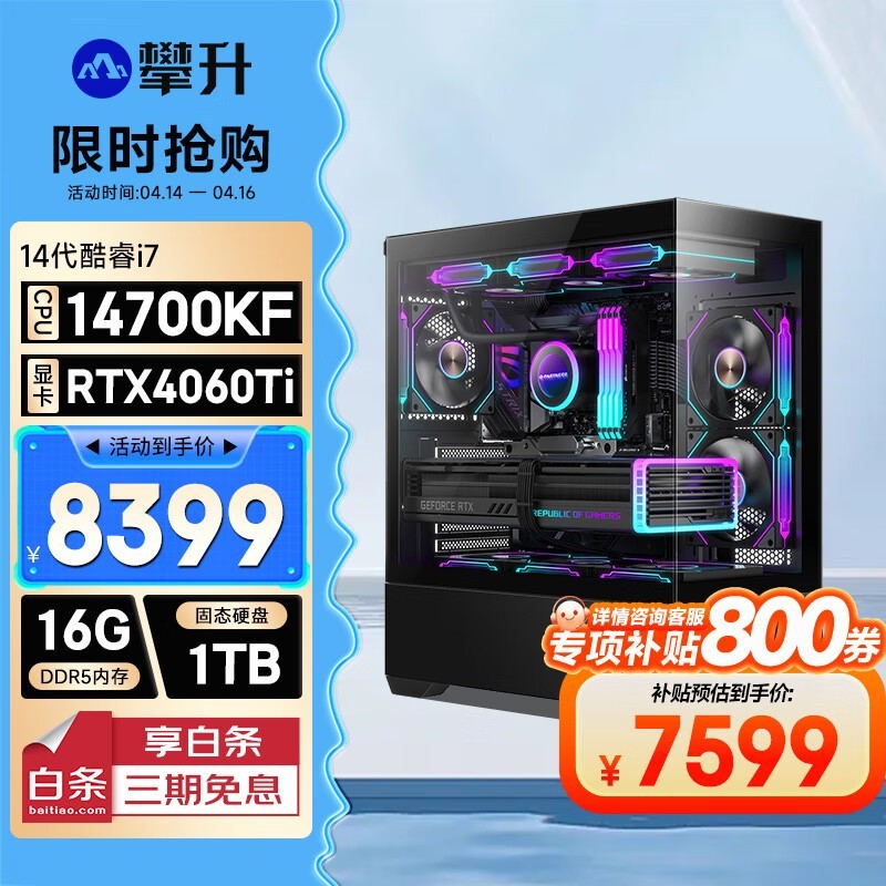 IPASON战神主机i7-14700KF/RTX4060Ti京东满减仅7599元