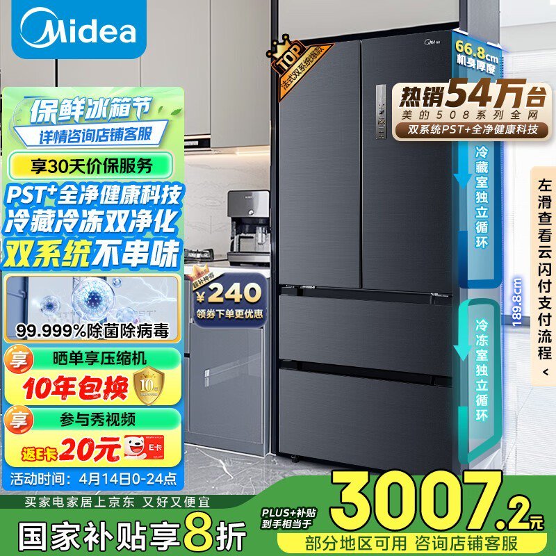 美的BCD - 508WTPZM(E)冰箱,京东优惠后2972元