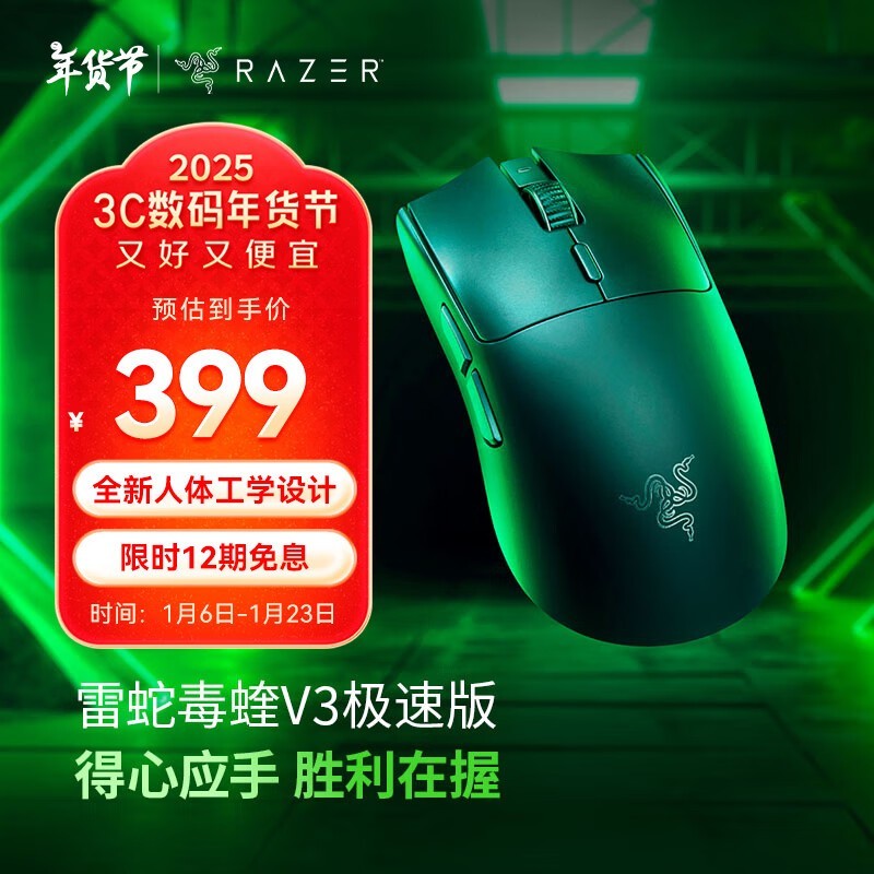 雷蛇毒蝰V3极速版无线鼠标京东好价305元