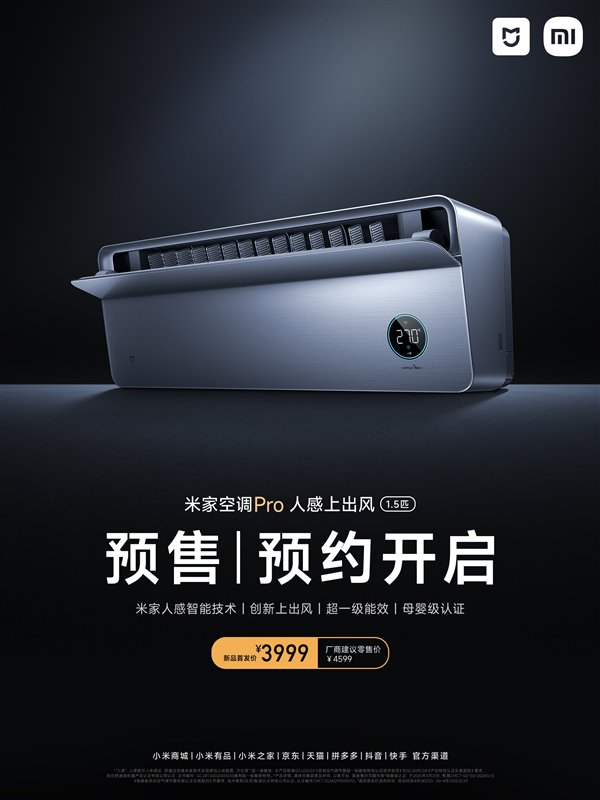 如今小米又带来了全新的升级款——米家空调Pro人感上出风1.5匹。