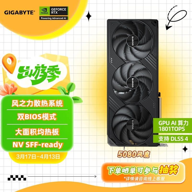 技嘉风魔RTX 5080 16GB显卡京东促销8257元