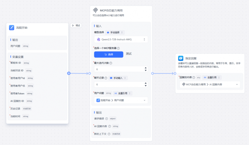 为进一步释放工具生态的潜能,浪潮通信智能体平台升级MCP集成能力,让智能体平台更高效地调用外部业务工具,无需进行复杂的适配和API封装。开发者可以直接利用预设工具,让智能体能够根据用户需求及大模型规划智能匹配最优工具,灵活调度不同的MCP工具,从而提高响应速度和执行效率。