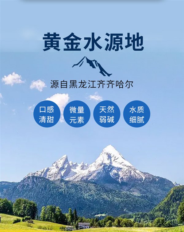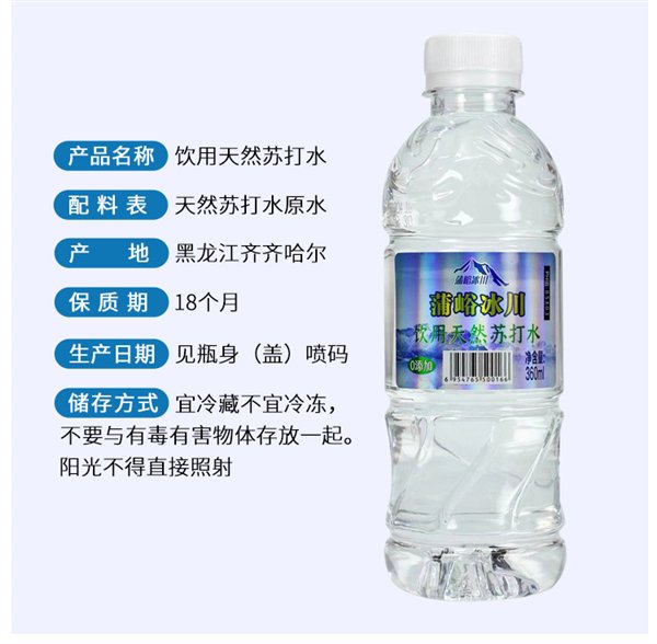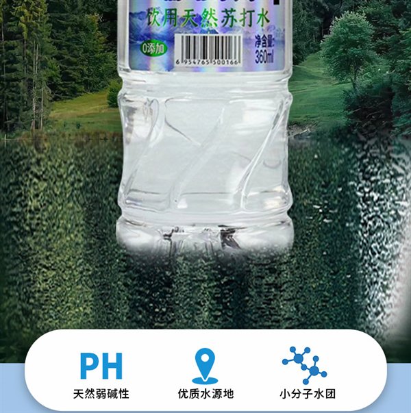 口感清甜,天然弱碱,水质细腻,0 添加,配料只有天然苏打水原水。