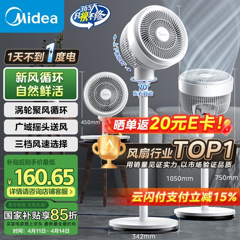 美的FGA24TQ空气循环扇轻音畅爽仅107元