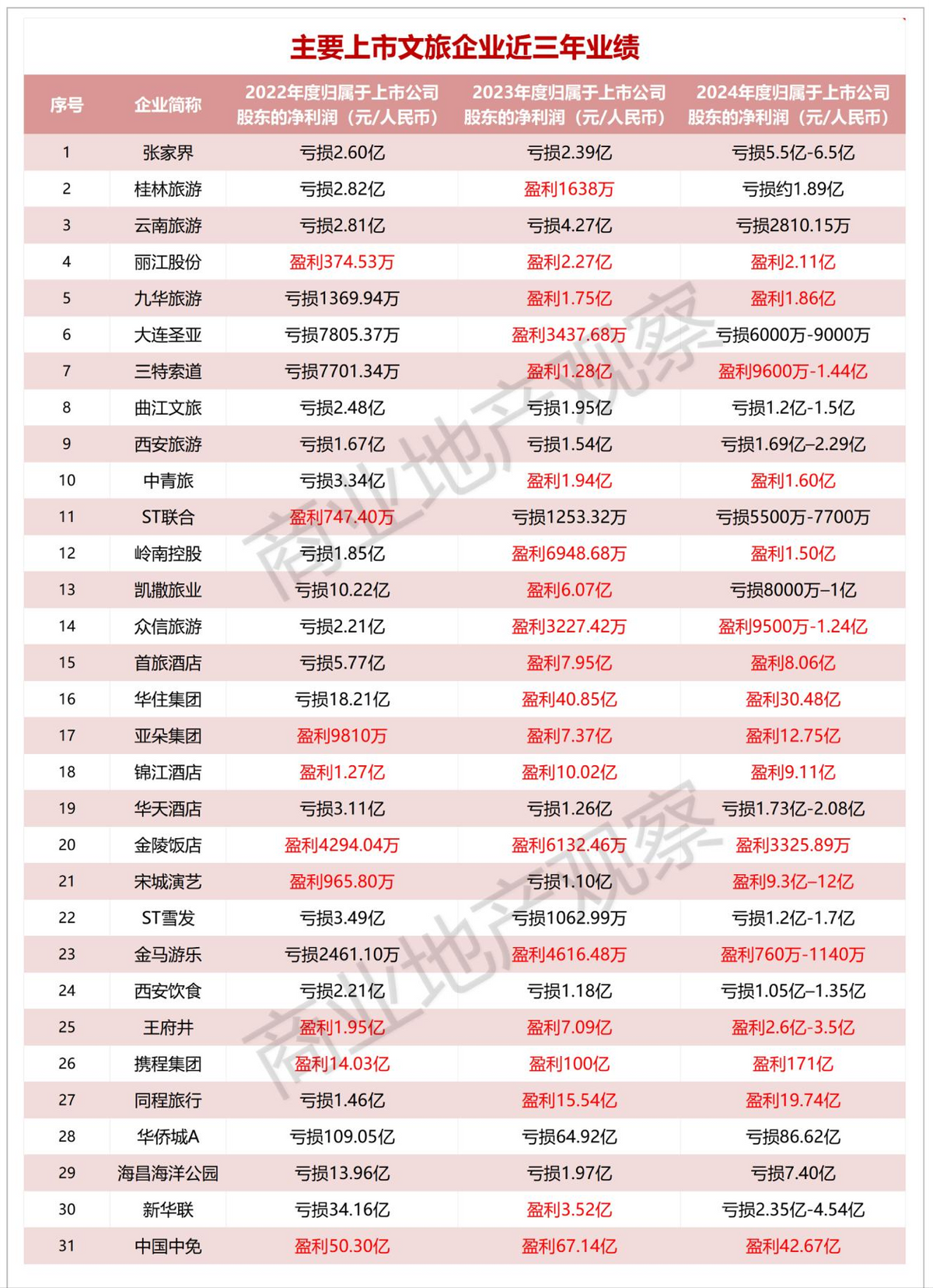 文化引领、体验为王,也逐渐成为国内文旅消费市场的主流趋势。利好频出之下,市场潜力持续释放,无疑为各大文旅上市企业提供了更多增收和发展的机会。期待他们用产品持续创新和服务不断升级,为2025年的文旅市场带来更多惊喜,实现行业的高质量发展。