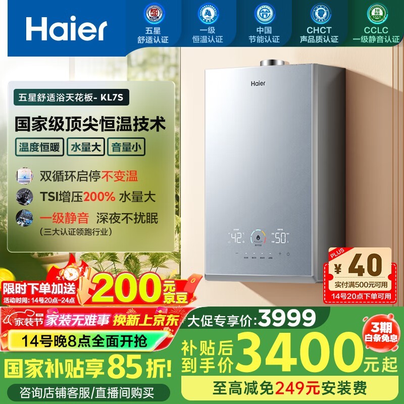 海尔16L燃气热水器,京东今晚优惠价2697元