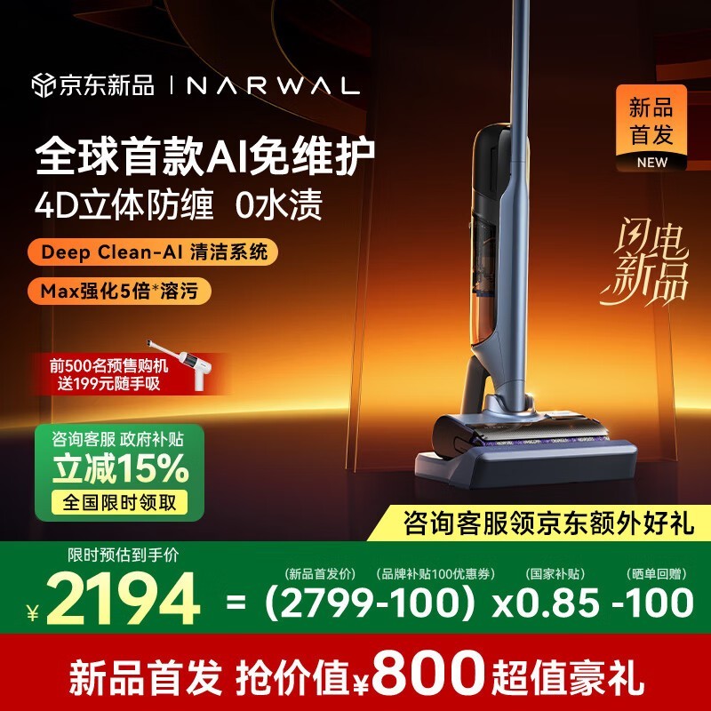云鲸NARWAL S3 Island无线洗地机清洁神器优惠到手2194元