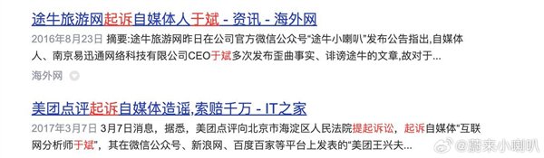那么于斌是何方神圣,结果上网一查才发现,美团、途牛等企业都对他提起过诉讼。