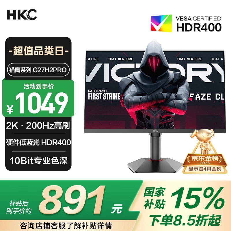 HKC猎鹰二代G27H2Pro显示器京东促销价1019元