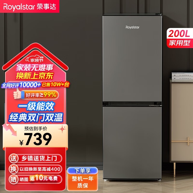 荣事达200升小型家用电冰箱双开门节能省电低音静音