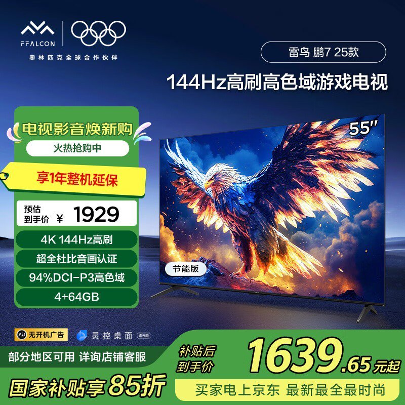 雷鸟鹏7 55英寸电视,京东活动价低至1573元