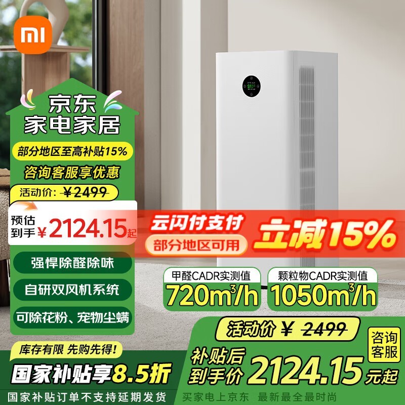 小米米家空气净化器5Pro,满1元打9折,到手2159元!