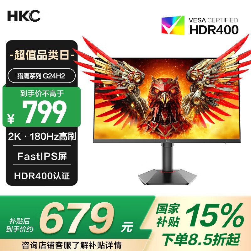 HKC猎鹰2 G24H2显示器京东促销价低至631元