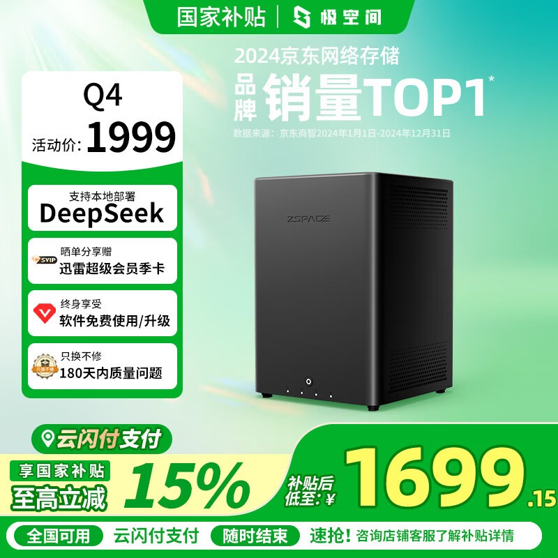极空间ZSpace Q4四盘位NAS存储 N95 8GB 无盘版 1699元