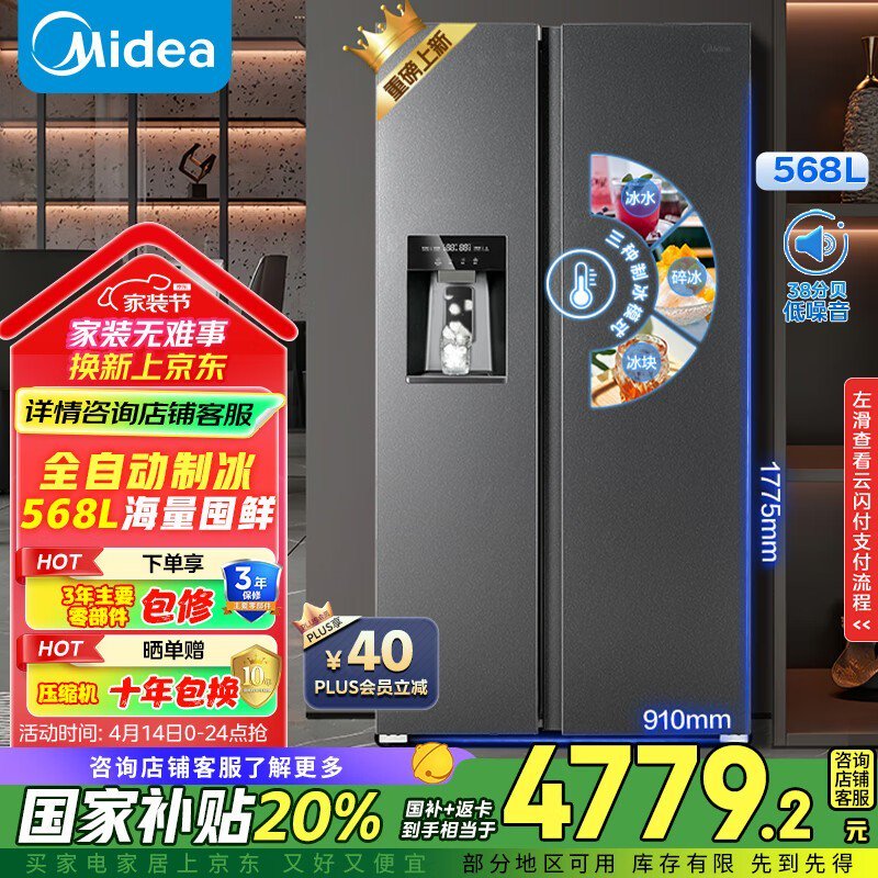 美的586L风冷对开门冰箱云釉灰促销信息