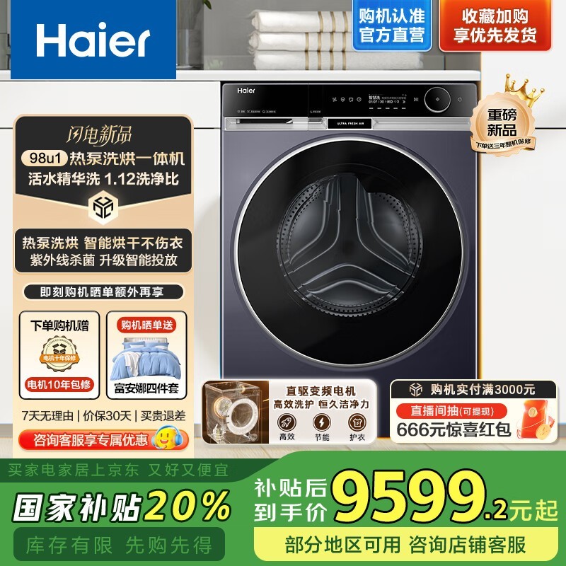 海尔XHG13L98U10洗烘一体机新品首发到手8499元