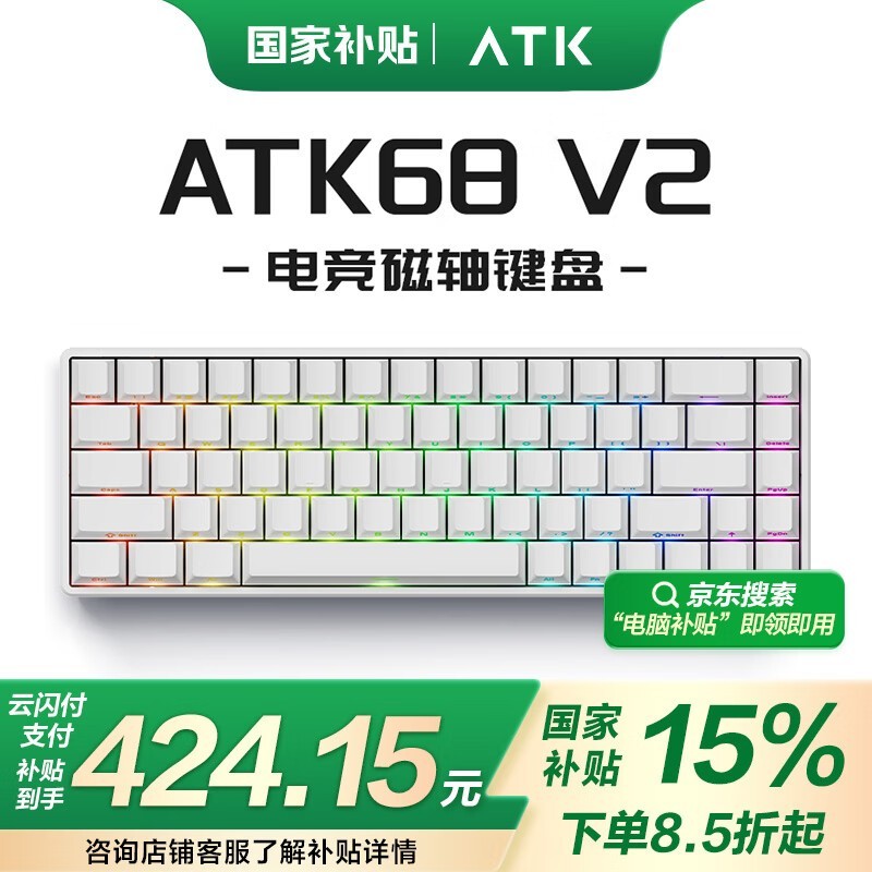 艾泰克ATK 68/V2电竞磁轴键盘低至373元