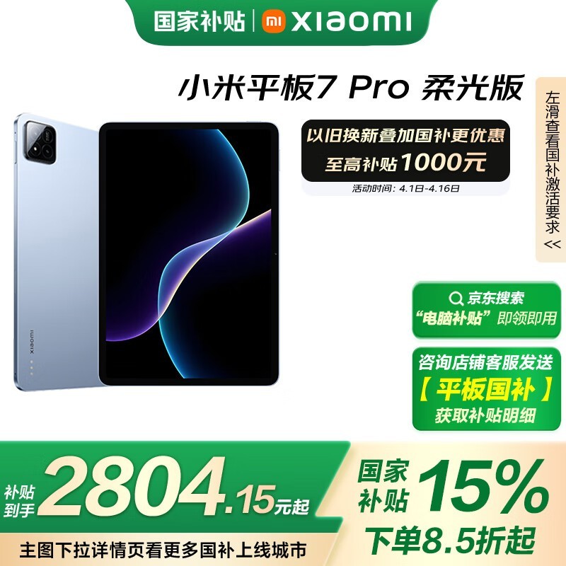 小米Xiaomi平板7 Pro柔光版京东优惠价2804元