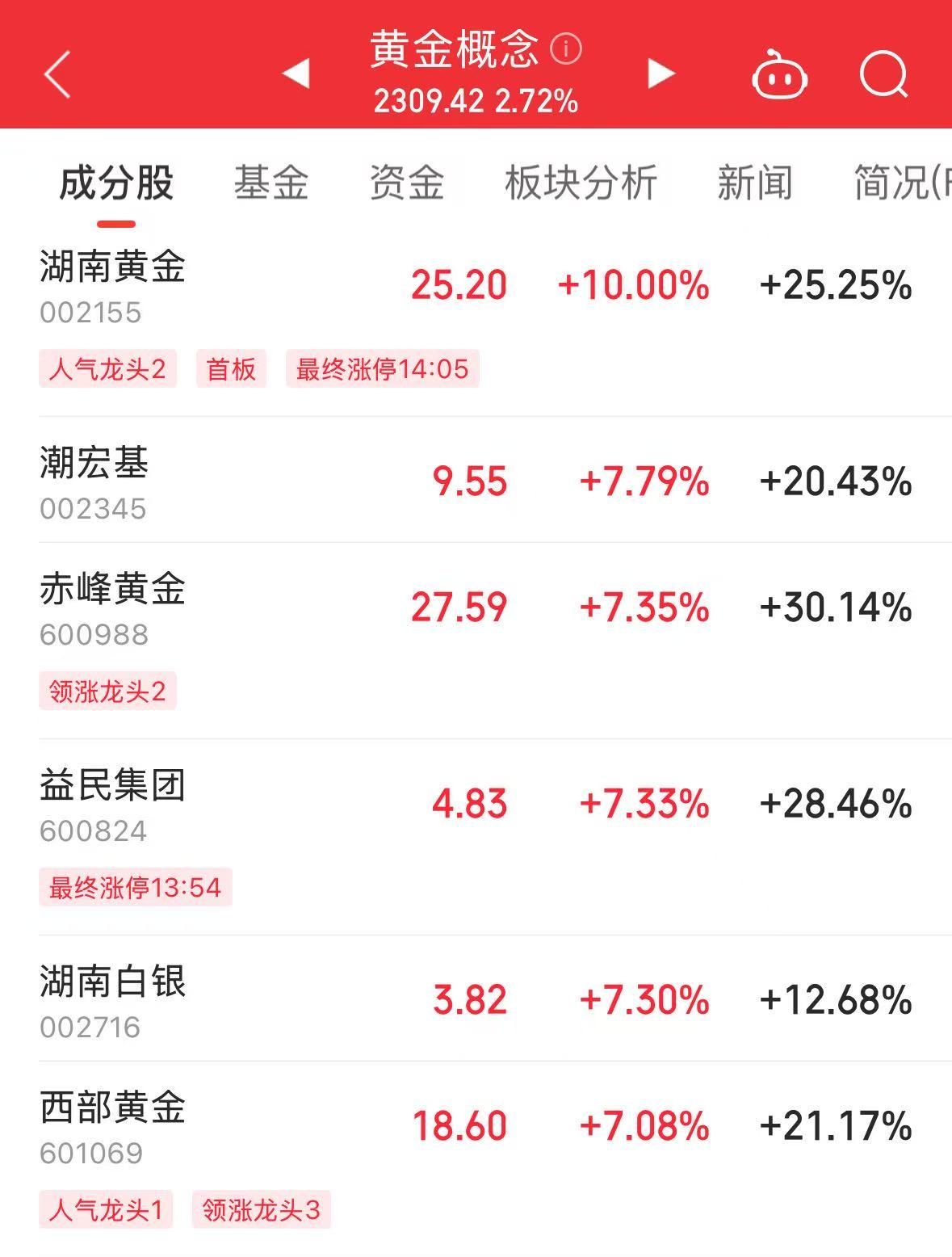 4月14日收盘,湖南黄金(002155.SZ)涨停,赤峰黄金(600988.SH)、西部黄金(601069.SH)、山东黄金(600547.SH)、中金黄金(600489.SH)等跟涨。港股黄金股同样表现亮眼,截至收盘,潼关黄金(00340.HK)大涨19.17%,山东黄金(01787.HK)、老铺黄金(06181.HK)等跟涨。
